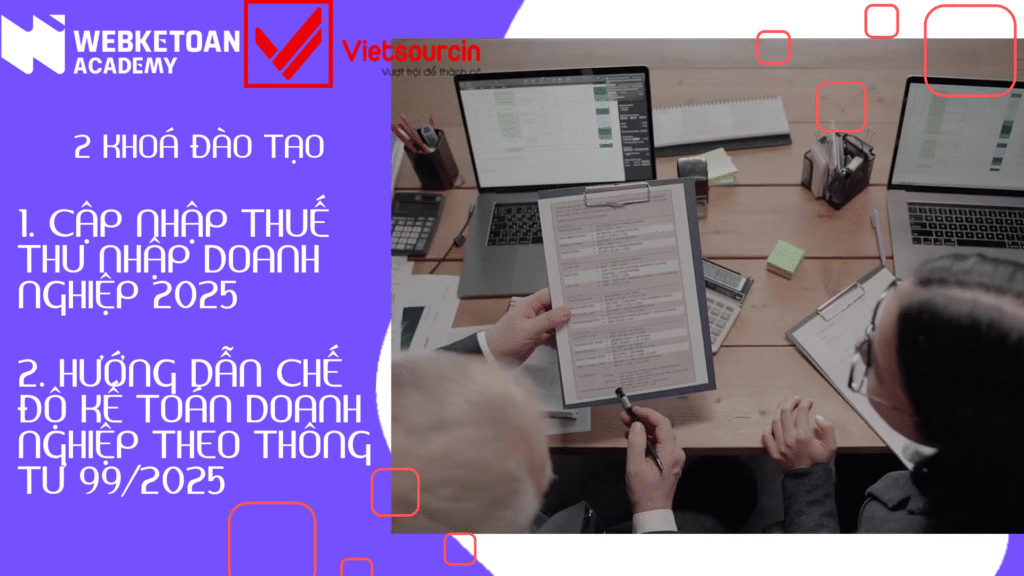 💡 Tham gia khóa đào tạo do Vietsourcing và Webketoan đồng tổ chức, bạn sẽ được cập nhật toàn diện các quy định mới nhất từ Bộ Tài chính và Tổng cục Thuế, đặc biệt là Thông tư 99/2025 thay thế Thông tư 200 và các điểm mới về thuế Thu nhập Doanh nghiệp năm 2025.