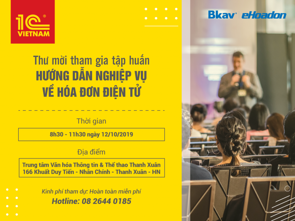 Với mong muốn giải đáp các thắc mắc về triển khai, sử dụng cũng như việc tích hợp phần mềm Kế toán với Hóa đơn điện tử, Công ty TNHH 1C Việt Nam phối hợp cùng BKAV tổ chức buổi tập huấn “Hướng dẫn Nghiệp vụ về Hóa đơn điện tử”.